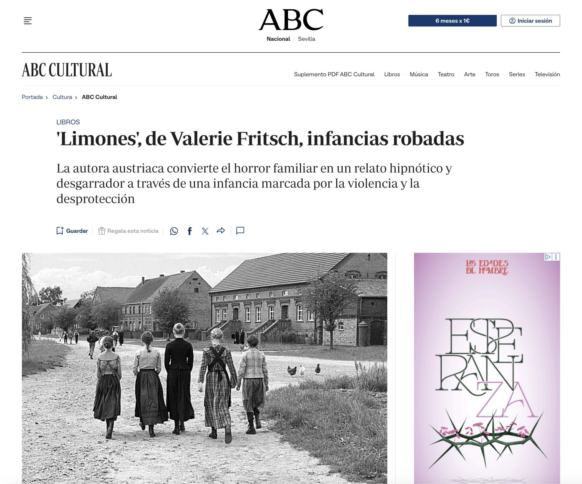 ‘Limones’, de Valerie Fritsch, infancias robadas La autora austriaca convierte el horror familiar en un relato hipnótico y desgarrador a través de una infancia marcada por la violencia y la desprotección. De una belleza perturbadora, donde anida, desde la primera página, una mezcla estremecedora de horror y de desgarrada y terrible vulnerabilidad, la novela ‘Limones’ de la autora austriaca Valerie Fritsch (Grazen, 1989) es una pequeña obra maestra. Mercedes Monmany para ABC Cultural | 24/02/2026